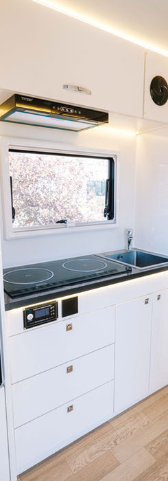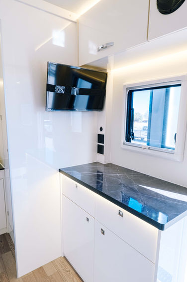 Featuring a spacious 2.25" thick all-composite insulated panel habitat box, you'll have plenty of room for all your gear and equipment. Plus, with 700+ Watts of solar power, 800 ah lithium batteries, and paired Honda Eu2200 generators for backup power, you'll never have to worry about running out of energy on your adventures.