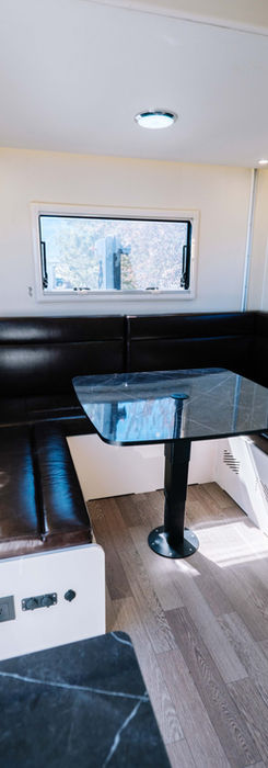 With a 85-gallon fresh water tank, 35-gallon grey tank with secret dump, and a 42-gallon diesel fuel tank, you'll have everything you need for extended trips off the grid.